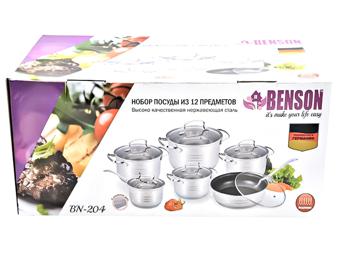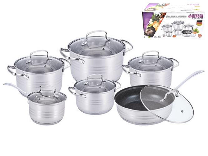 Набор посуды Benson, из нержавеющей стали (цена за набор 12 предметов)