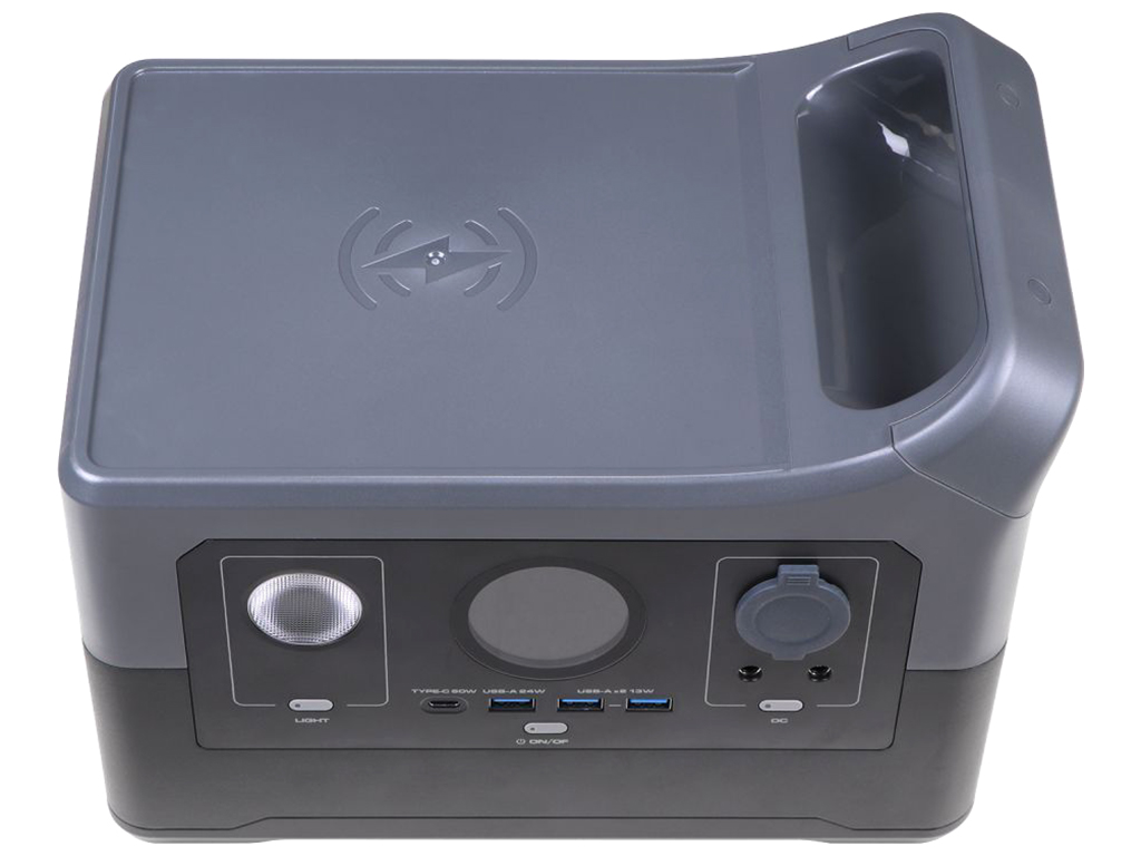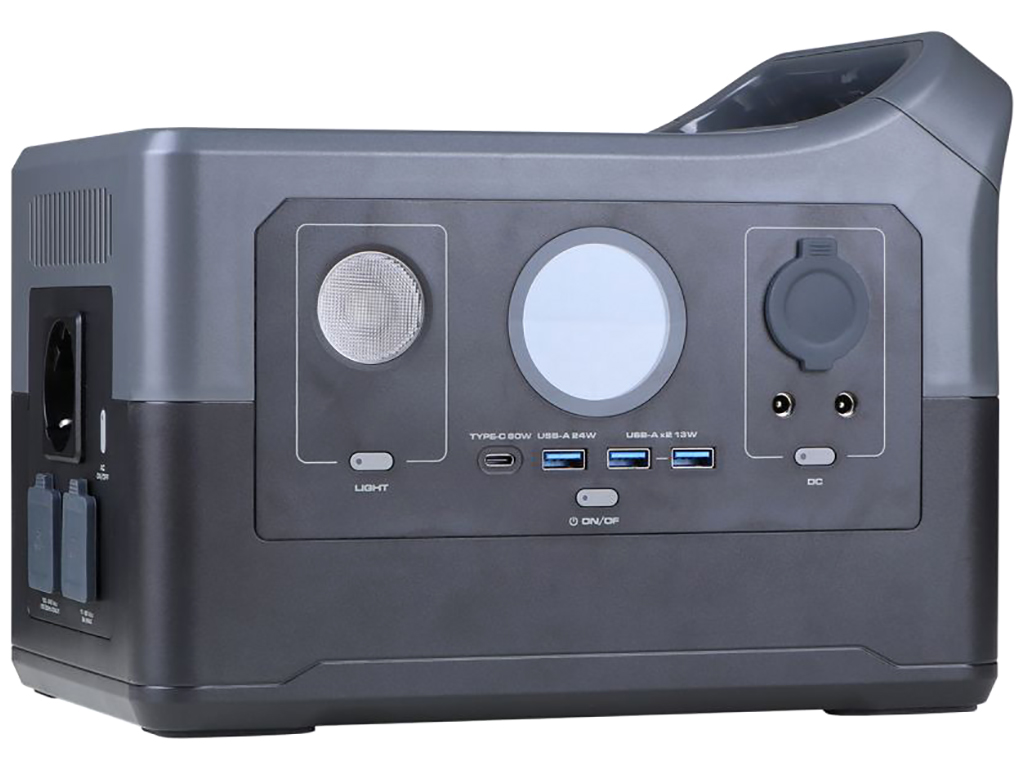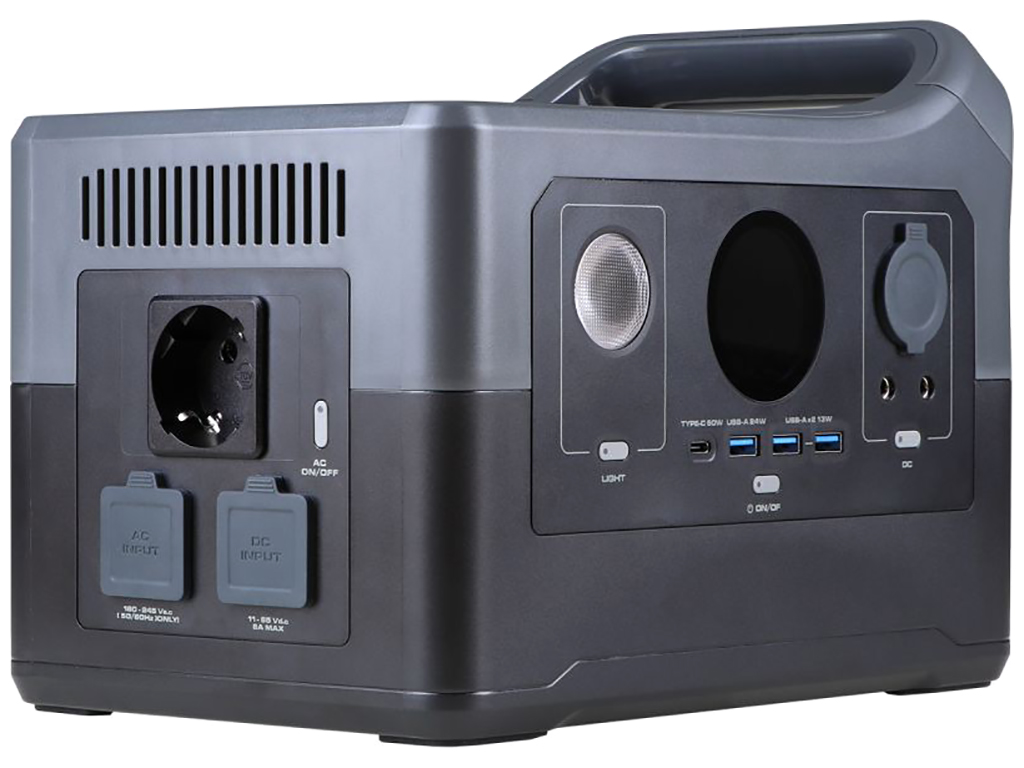 Power Station 3E E7 700W станет отличным выбором для зарядки портативных гаджетов и подключения к сети различной электротехники во время частых отключений электричества, отдыха на природе и проведения мероприятий на открытом воздухе. Устройство имеет небольшие размеры и вес, поэтому не займет много места, например в багажнике авто, оснащено массивной ручкой для удобной транспортировки. Корпус станции надежно собран, изготовлен из прочного, огнестойкого пластика, дополнен противоскользящими накладками и панелями с перфорацией, которые в сочетании с встроенным кулером обеспечивают эффективное охлаждение. Номинальная емкость ее встроенного Li-ion NMC аккумулятора составляет 140000mAh или 504Wh, количество циклов его заряда - 800. Благодаря поддержке технологии быстрой зарядки он зарядится на 80% всего за 1 час. На ее центральной панели находятся: круглый LED дисплей; фонарь с кнопкой для его управления; кнопка включения; разъемы для зарядки гаджетов по протоколам PD и QC - Type-C (60W), USB (24W), 2xUSB (13W); интерфейсы с отдельным включателем для зарядки и подключения к сети автомобильных и других устройств - 2xDC 5521 (13.6V/3A) и разъем прикуривателя (13.6V, 240W max). Фонарь может работать в нескольких режимах, а дисплей отображает уровень заряда, значение входящей и исходящей мощности, оставшееся время работы при текущей нагрузке и используемые разъемы. На верхней панели имеется площадка для беспроводной зарядки гаджетов, а в одном из торцов расположены 3 интерфейса с кнопкой для их включения, а именно: розетка с мощностью на выходе 700W и 2 разъема для зарядки стации. Устройство может заряжаться от сетей с переменным током, частотой 50-60Hz и напряжением 180-245V, а также от гнезда прикуривателя авто или солнечной панели с максимальной входящей мощностью 420W.