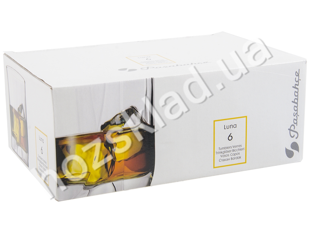 Набор стаканов Pasabahce Lua. Объем стакана: 350мл. Диаметр: 8,5см. Высота: 9,5см. Назначение: для виски. Можно мыть в посудомоечной машине. Количество штук в наборе: 6. Поставляется в коробке: 26,5х17,5х10,5см.