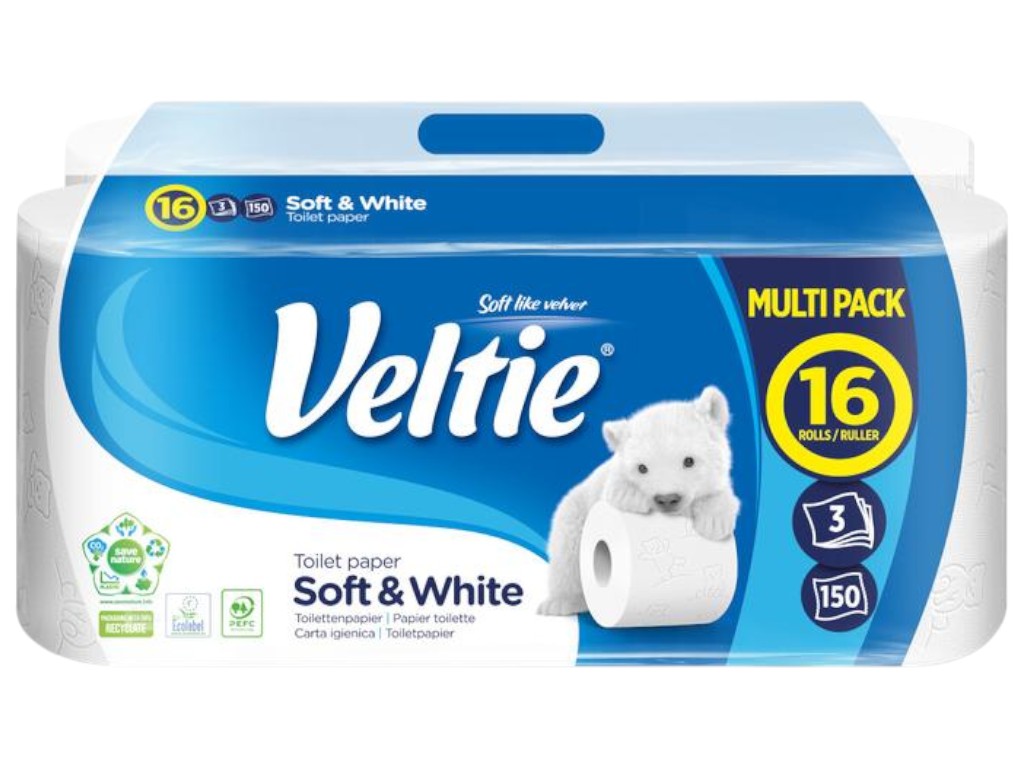 Бумага туалетная Veltie Soft & White, 16 рулонов, 3 слоя, экологичная, цвет белый