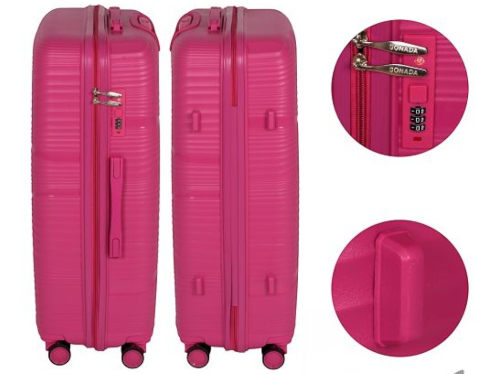 Каждый опытный путешественник знает: надёжный чемодан — это не просто ёмкость для вещей, а часть самого пути. Этот набор из трёх чемоданов создан для тех, кто привык двигаться вперёд, кто не боится долгих маршрутов и спешных пересадок. Полипропиленовый корпус отличается особой прочностью и гибкостью — материал стойко переносит удары, перепады температуры и давление. Даже при падении чемодан не трескается, а его форма остаётся неизменной, что особенно важно при частых перелётах и сдаче багажа. Поверхность корпуса выполнена с рельефной диагональной текстурой, которая защищает его от мелких потертостей и придаёт современный, динамичный вид. Розовый цвет делает набор утончённым и ярким: он привлекает внимание, поднимает настроение и легко узнаётся на багажной ленте. Этот оттенок ассоциируется с лёгкостью, вдохновением и романтикой — отличное решение для тех, кто любит путешествовать со вкусом. Телескопическая ручка изготовлена из лёгкого алюминиевого сплава. Она выдвигается плавно, фиксируется в нескольких положениях, удобно лежит в руке и не люфтит при движении. Основные ручки по бокам и сверху имеют эргономичную форму и мягкие вставки, что делает подъём багажа комфортным. Конструкция ручек надёжна: они не гнутся и не расшатываются со временем, сохраняя первоначальную устойчивость. Колёса в этой модели заслуживают отдельного внимания. Они двойные, вращаются на 360 градусов и обеспечивают лёгкое движение по любому покрытию. Даже при полной загрузке чемодан остаётся устойчивым, а движение остаётся плавным. Колёса изготовлены из износостойкого полиуретана, поэтому не скрипят, не застревают в неровностях и сохраняют ходкость даже после долгого использования. При перемещении по аэропорту или вокзалу корпус движется почти бесшумно — деталь, которую особенно ценишь в дороге. Внутреннее пространство продумано до мелочей. Внутри два отделения — одно закрывается на молнию и снабжено сетчатым карманом для мелких вещей, второе оснащено перекрещенными ремнями для фиксации одежды. Подкладка из плотного полиэстера устойчива к загрязнениям, не мнётся и легко очищается. Для документов и аксессуаров предусмотрено отдельное пространство, где всё всегда под рукой. Я часто использую этот отсек для зарядных устройств и косметички — удобно и аккуратно. Кодовый замок встроен в корпус и служит надёжным барьером для содержимого, сохраняя уверенность в безопасности вещей во время путешествий. Боковые опоры защищают корпус при горизонтальном положении на полу или при транспортировке. Комплект включает три чемодана разных размеров, которые идеально подходят для разных типов поездок. Малый (20 дюймов) удобно брать в ручную кладь — он лёгкий и манёвренный. Средний (24 дюйма) подходит для недели отдыха или командировки, а большой (28 дюймов) вмещает вещи всей семьи и не теряет устойчивости при загрузке. Чемоданы складываются один в другой, занимая минимум места при хранении — решение, которое особенно ценят те, у кого ограничено пространство дома. Уход за набором не требует усилий: корпус достаточно протирать мягкой влажной тканью, колёса — очищать от пыли и песка, а подкладку можно освежать лёгким моющим раствором. Даже при активном использовании чемоданы сохраняют аккуратный внешний вид, не теряя форму и насыщенность цвета. Поставляется