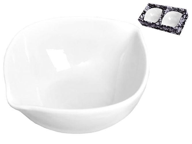 Набор соусниц. Идеально подойдут к серверовке стола. Размер коробки: 21х10,5х5,5см. Количество в наборе: 2шт. Материал: фарфор.