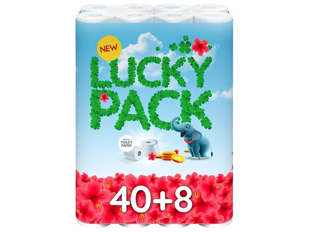 Туалетная бумага Lucky pack. Количество в упаковке: 48 рулони. Количество слоев: 2. Цвет: белый.