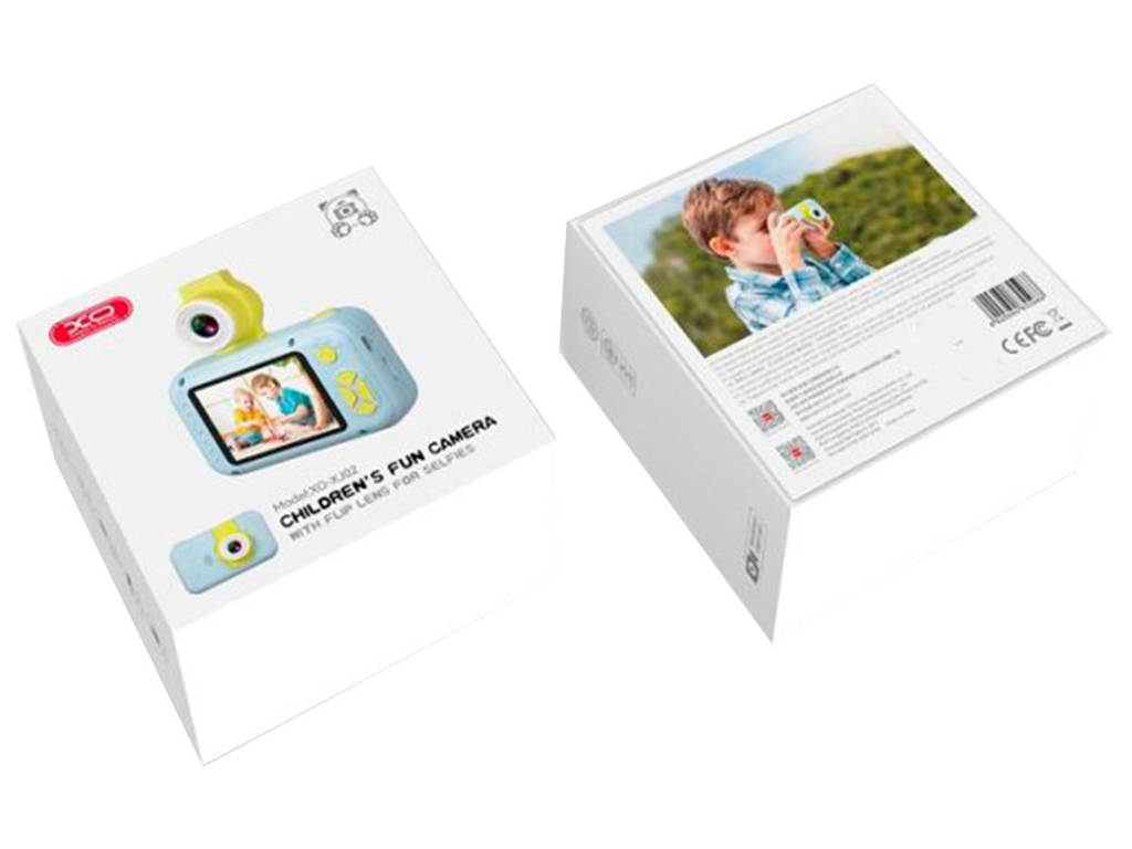 Детская камера XO XJ02 – это уникальное устройство, разработанное с использованием современных технологий специально для самых юных фотографов. Её яркая расцветка, несомненно, привлечёт внимание каждого ребёнка, а широкий функционал создаст все условия для познания окружающего мира и развития творческого потенциала. Приятная на ощупь матовая поверхность, которая предотвращает случайное выскальзывание из рук. Небольшой вес (71 грамм) и безопасная, практичная форма со скруглёнными гранями. Надёжно собранный корпус из ударостойкого ABS пластика. Качественный IPS дисплей диагональю 2 дюйма с разрешением 320*240 пикселей. Удобно расположенные кнопки включения, управления и спуска затвора. Объектив с углом обзора 120° и откидной конструкцией для съёмки селфи. Съёмка фото с разрешением до 40мP с интерполяцией и запись видео с интерполированным разрешением 1280*720 пикселей. Множество красочных эффектов и штампов для создания фотошедевров. Несколько игр и плеер для прослушивания музыки.