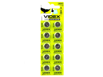 Батарейка алкалин. Videx AG10 1.5V, AG10/LR1130 (цена за 10шт,1 лист) 4820118291680