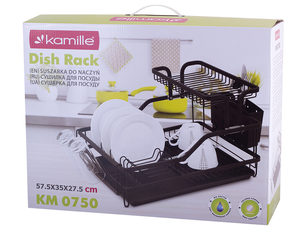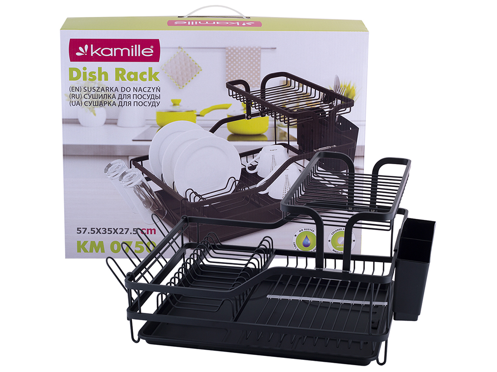 Сушилка для посуды Kamille из алюминия с поддоном 57,5х35х27,5см (черная)