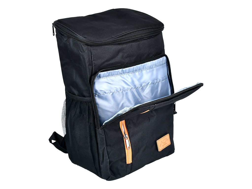 Термосумка-рюкзак 37×27×14.5 см — практичное решение для активных людей, которым важны комфорт, стиль и свежесть продуктов в одном формате. Изготовленный из плотного полиэстера, этот рюкзак надёжно защищает содержимое от влаги и механических повреждений. Внутри — термофольгированное покрытие для сохранения температуры еды и напитков. Вместительное основное отделение легко вмещает контейнеры, бутылки или фрукты, а дополнительные передний карман на молнии и боковые сетчатые карманы идеальны для мелочей и напитков. Широкие регулируемые плечевые лямки обеспечивают удобную переноску даже на длительных прогулках или поездках. Стильный внешний вид с контрастными вставками делает рюкзак современным и универсальным. Доступен в чёрном, синем, сером и бежевом цветах.