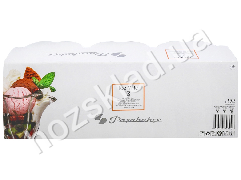 Размер: 10х10х13см, по верху ширина 10см, по верху диагональ 11,5см, диаметр по низу 7см, высота - 13см. Объем: 160мл. Материал: натрий-кальций-силикатное стекло. Количество - 3шт. Упаковка: цветная коробка 35,5х10х14см. Экологически чистый материал - натрий-кальций-силикатное стекло, оригинальный дизайн, возможность использования в микроволновке, разрешается мыть в посудомоечной машине. Назначение: для мороженого.
