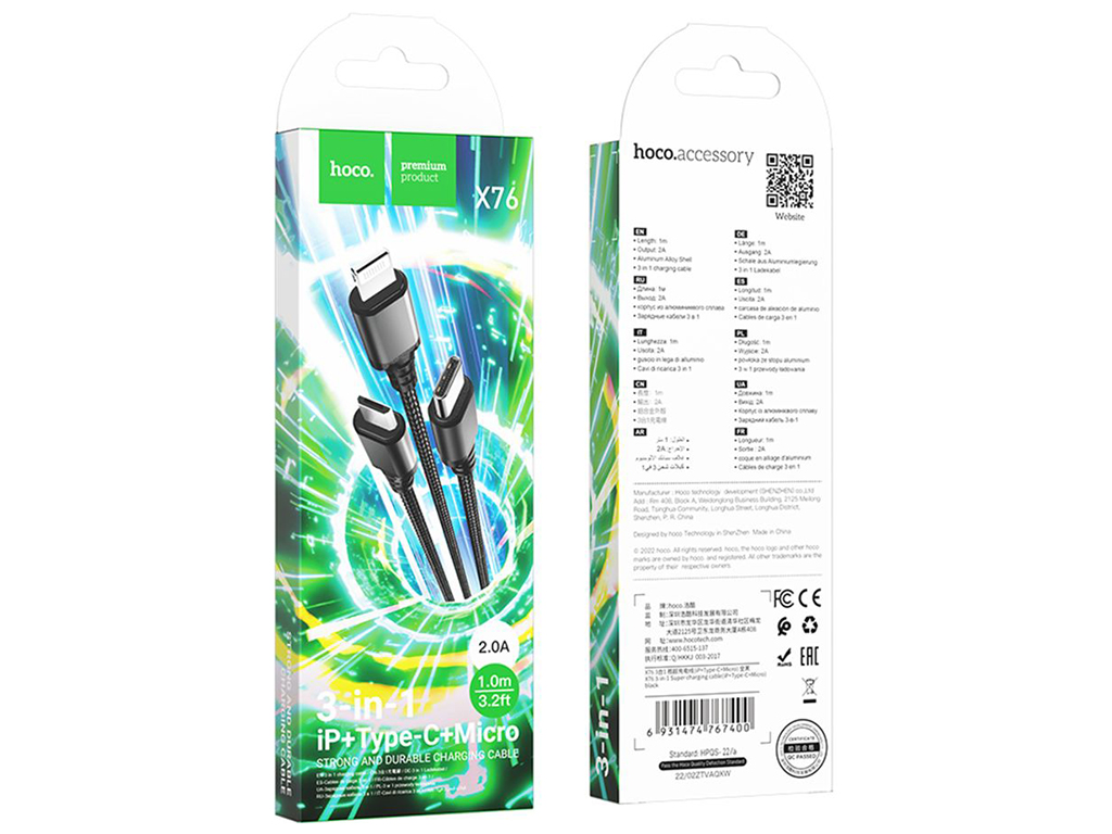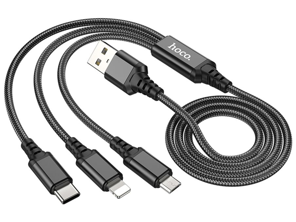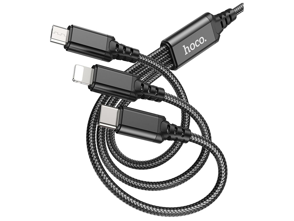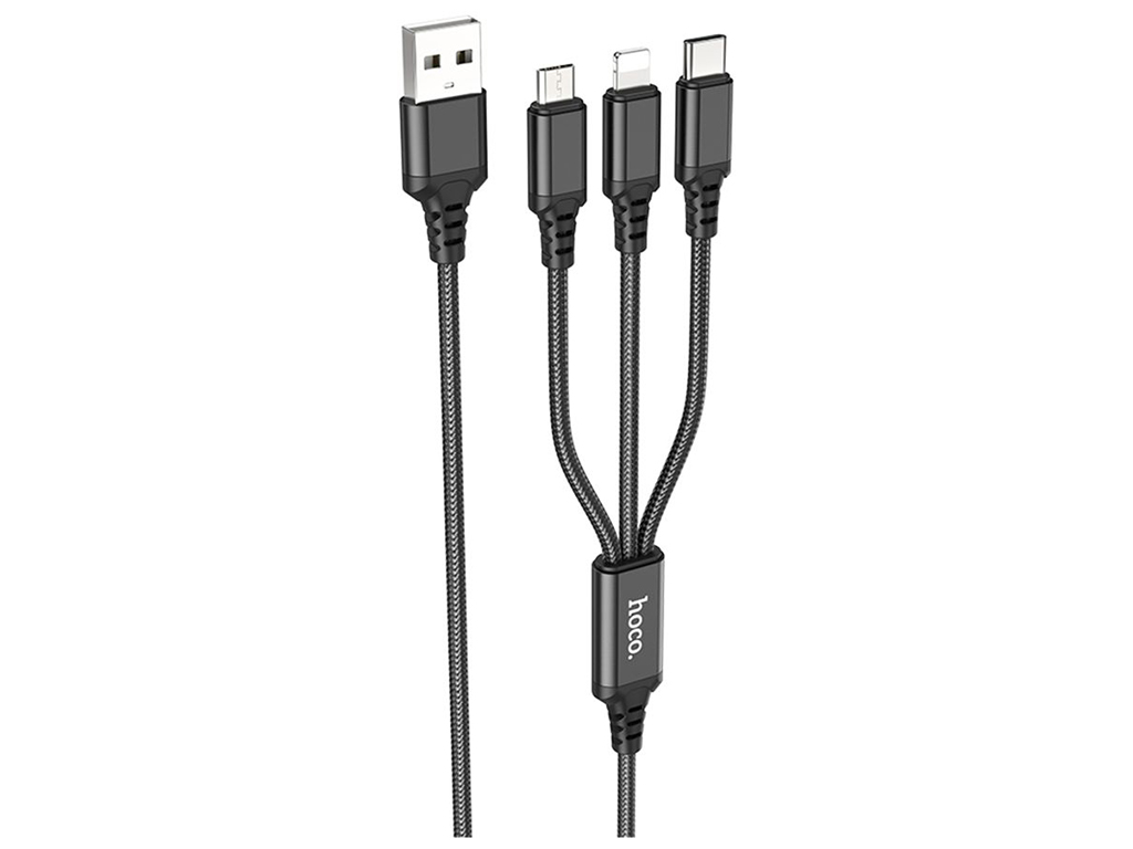 Кабель USB Hoco X76 3-in-1 IP+Type-C+мicro 2A Цвет Черный