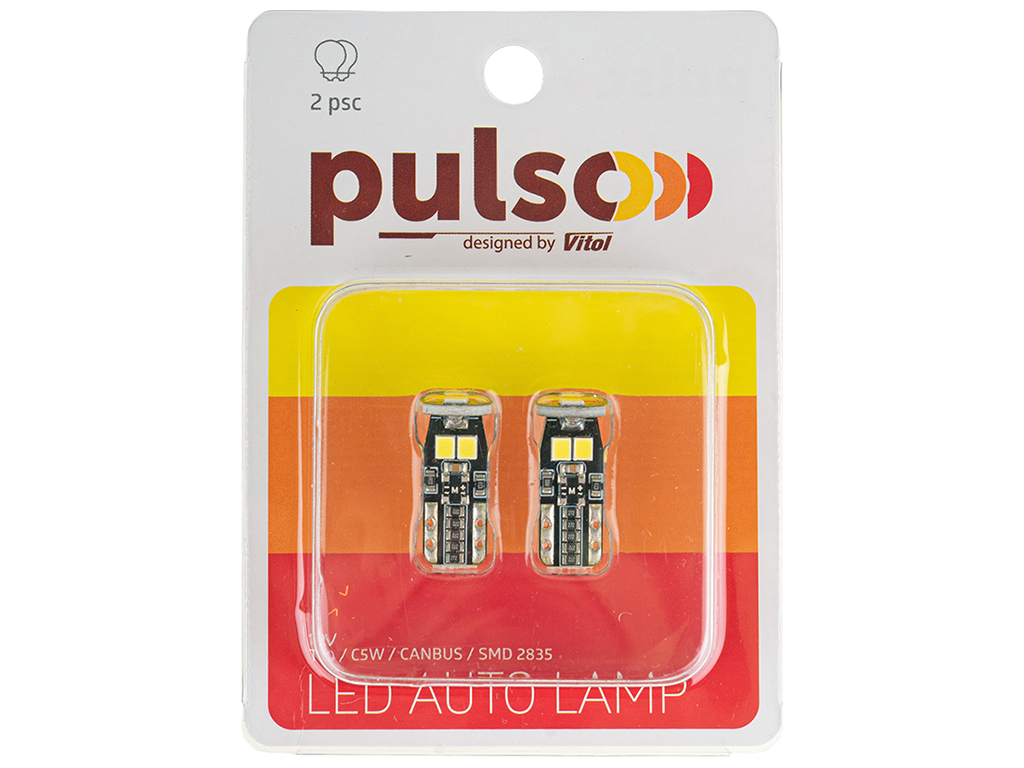 Лампа Pulso габаритная LED T10 CANBUS, 6SMD-2835,12v, 2.7W, 290lm White (LP-10290). Цвет свечения: белый. Количество в упаковке: 2шт.