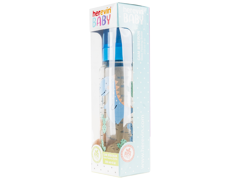 Бутылка для детей с соской Herevin. Размер упаковки: 5,5x5,5x21,5см. Высота бутылки с крышкой: 21см. Высота без крышки: 16см. Объем: 250мл. Материал бутылки: стекло. Материал крышки: пластик. Наличие крышки: да. Четкая мерная шкала помогает определить размер порции питания для малыша. Защитный пластиковый колпачок хранит соску бутылки от загрязнений на прогулке.