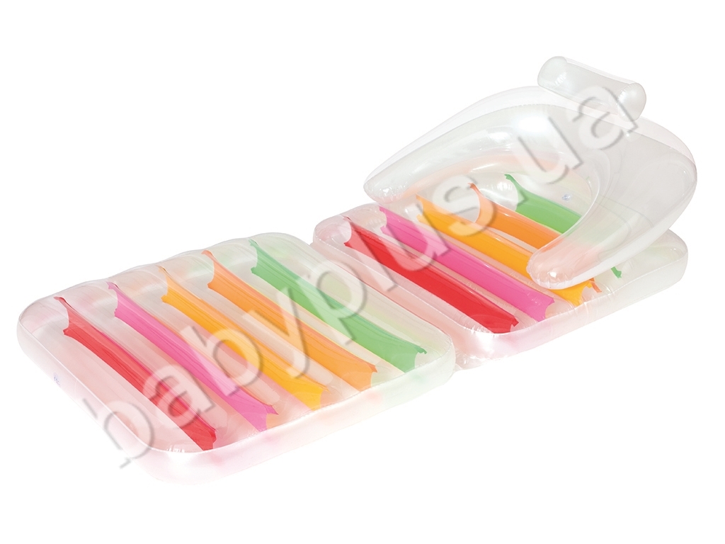 Надувной матрас-кресло с удобной спинкой и подлокотниками, состоит из прозрачного винила толщиной 0,25 мм. В разложенном виде — это полноценный матрас, на котором Вы сможете плавать или лежать на берегу.