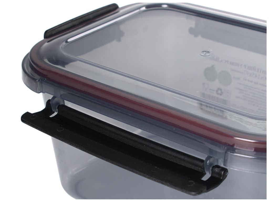 Пластиковый прямоугольный контейнер с герметичной крышкой - идеальный помощник для хранения пищи и различных предметов. Оснащенный четырьмя прочными фиксаторами, он обеспечивает надежное закрытие и предотвращает утечку содержимого. Резинка в крышке гарантирует дополнительную герметичность, что делает его отличным для транспортировки блюд или хранения влажных продуктов. Стильный полупрозрачный черный цвет добавляет элегантности и позволяет легко контролировать содержимое. Этот практичный контейнер станет отличным дополнением для вашей кухни, пикников или путешествий.