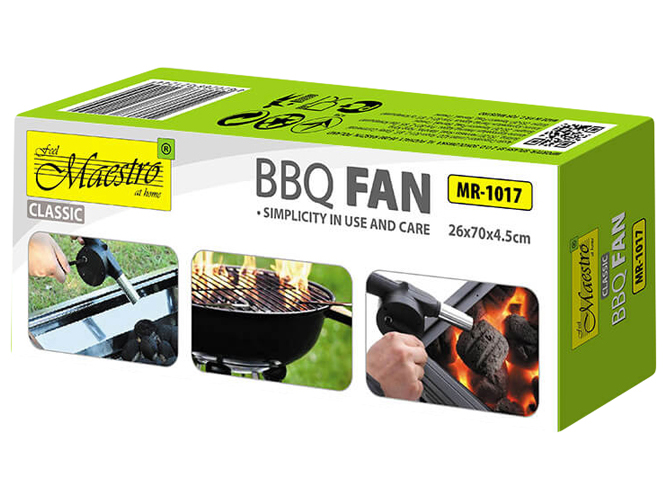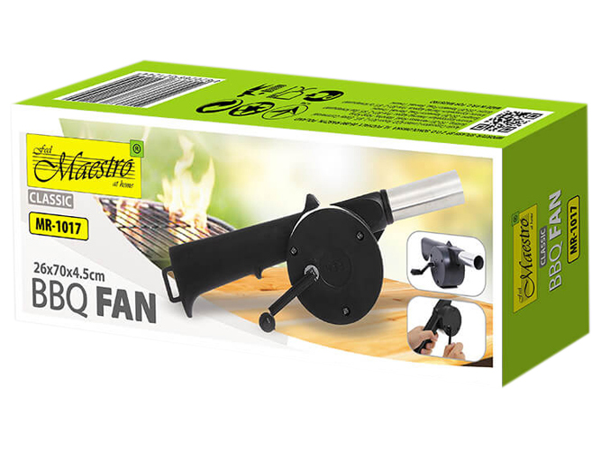 Вентилятор ручной для розжига гриля (фен для барбекю) Maestro - это удобный инструмент, созданный специально для быстрого разжигания огня. С его размерами 26х70х4,5см он обеспечивает удобство и простоту использования. Изготовленный из пластика и нержавеющей стали, этот вентилятор сочетает в себе легкость и прочность. Он идеально подходит для разжигания гриля, костра или камина, предоставляя вам возможность эффективно и быстро разжигать огонь. Специальная ручка позволяет создавать поток воздуха при вращении (механический, не электро).