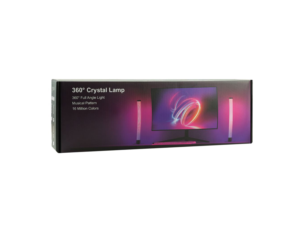 Студийная лампа представляет собой комплект из двух трубчатых светильников-стоек с Bluetooth управлением и RGB подсветкой, обеспечивающей равномерное рассеивание света на 360 градусов. Конструкция выполнена из ABS пластика и поликарбоната с устойчивыми съемными основаниями. Лампы оснащены RGB светодиодами мощностью 10 ватт, поддерживают 16 миллионов цветов, динамические световые эффекты и синхронизацию со звуком. Управление осуществляется через пульт дистанционного управления или мобильное приложение по Bluetooth. В комплект входят две лампы, подставка и пульт.