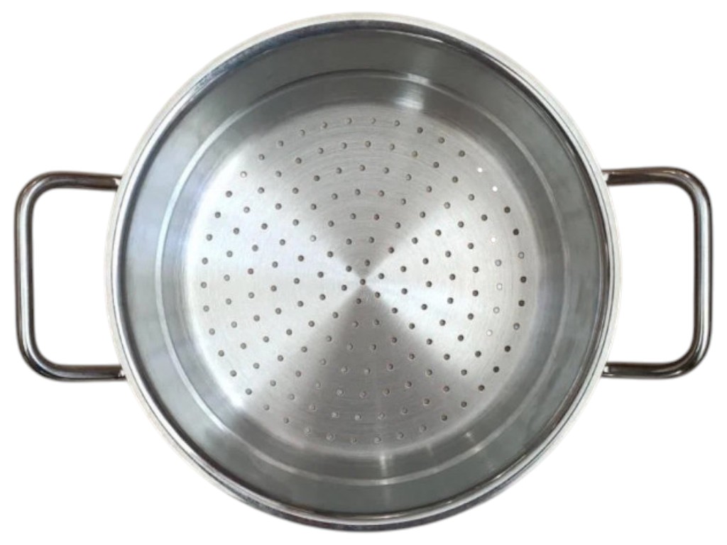 Пароварка-дуршлаг изготовлена из нержавеющей стали и имеет круглую форму. Оснащена двумя металлическими ручками и рассчитана на один ярус приготовления. Подходит для приготовления блюд на пару, а также для хранения продуктов. Допускается мытьё в посудомоечной машине и использование в духовом шкафу при температуре до 260 °C.