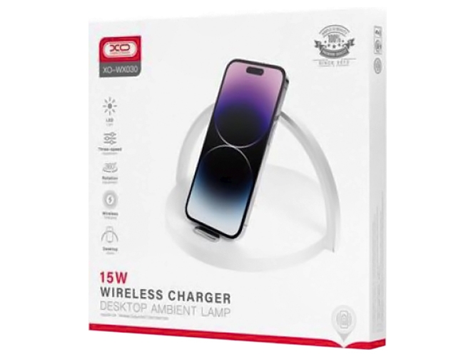 ?Беспроводное зарядное устройство XO WX030 15W 3 in 1 - это уникальный аксессуар, который поможет зарядить большинство моделей современных смартфонов и некоторых других гаджетов, совместимых с технологией Qi (WPC), а также предоставит другие полезные возможности. Благодаря изысканному, стильному дизайну и компактным размерам, устройство лаконично впишется в любой современный интерьер, устанавливаясь на журнальном столике, рабочем столе или прикроватной тумбочке. Для его изготовления используются надежные электронные компоненты, ABS пластик, поликарбонат и алюминий, что гарантирует длительный срок службы и стабильный, абсолютно безопасный процесс зарядки. Конструкция аксессуара состоит из тонкого, круглого основания с площадкой для беспроводной зарядки на верхней панели и функциональной лампы, которая выполнена в форме дуги, соединена с основанием шарнирами для регулировки угла наклона и может использоваться в качестве подставки для смартфона. Внешняя алюминиевая панель лампы предотвращает перегрев, а ее встроенные светодиоды излучают безопасный для глаз свет с незаметным мерцанием. Модель оснащена разъемом Type-C для ее подключения к источнику питания, LED индикаторами для контроля за ее работой и кнопкой для включения лампы и выбора 1 из 3 режимов ее яркости. Исходящая мощность на выходе площадки беспроводной зарядки регулируется автоматически и может составлять 5, 7.5, 10 и 15Вт.