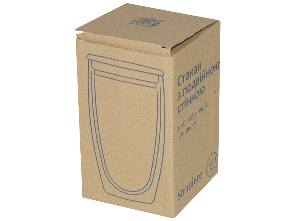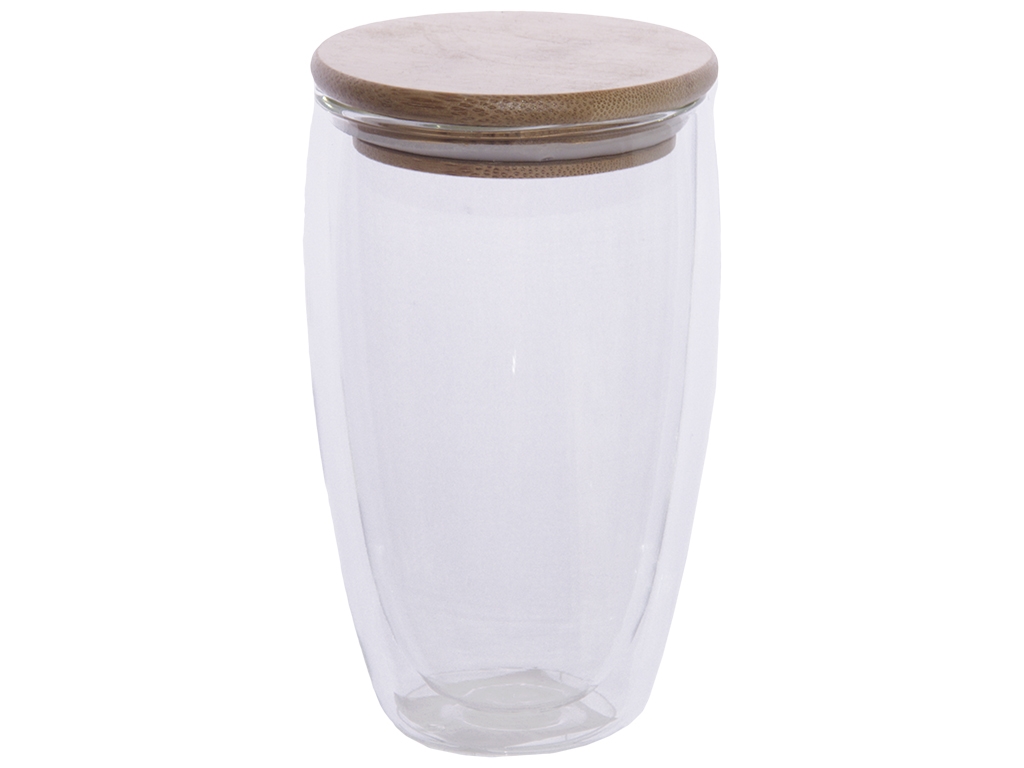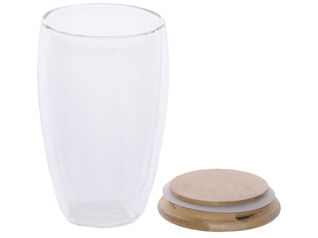 Стакан с двойной стенкой и бамбуковой крышкой Страньере стеклянный 420мл