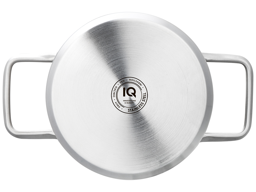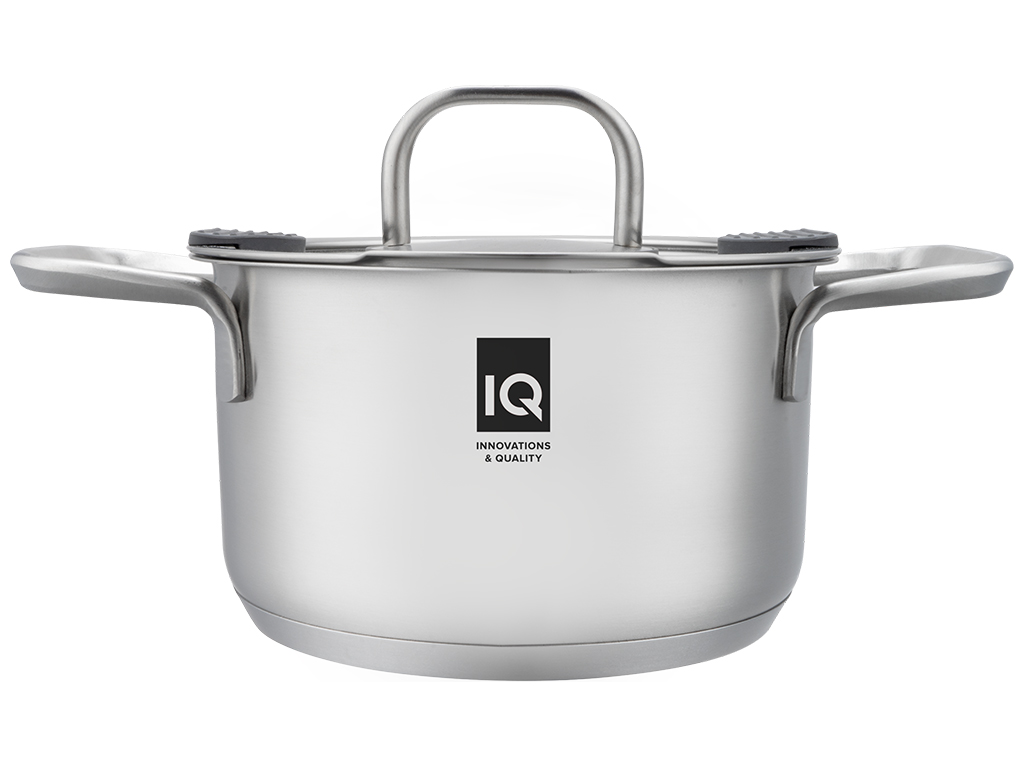Кастрюля IQ Be Creative с крышкой имеет корпус изготовлен из высококачественной нержавеющей стали марки 18/10 толщиной 0,6мм. Тройное капсульное дно для равномерного распределения тепла по всей внутренней поверхности кастрюли. Внутренняя мерная шкала. Сатиновая внутренняя и внешняя полировка поверхности. Надежное точечное крепление ручек. Крышка из термостойкого стекла с силиконовыми вставками и отверстием для удобного слива жидкости. Подходит для всех видов плит и посудомоечных машин. Диаметр: 24см. Объем: 5,8л.