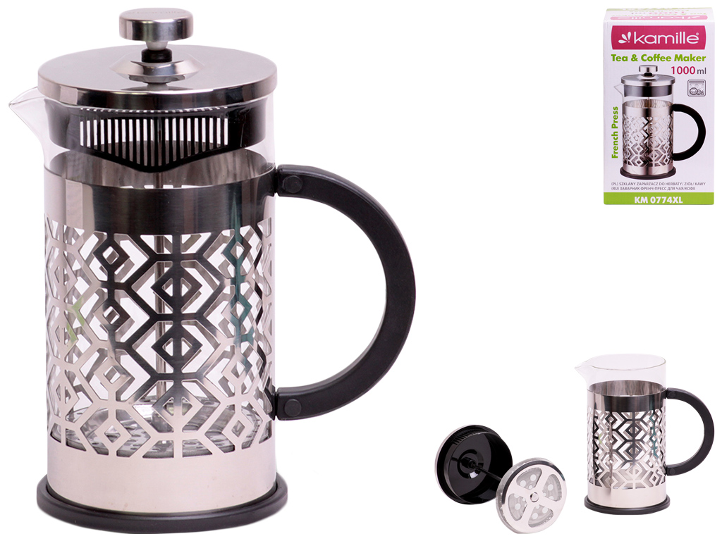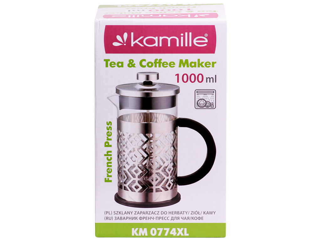 Френч-пресс Kamille из нержавеющей стали и стекла 1л