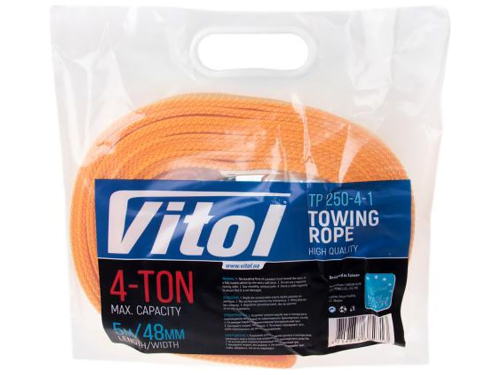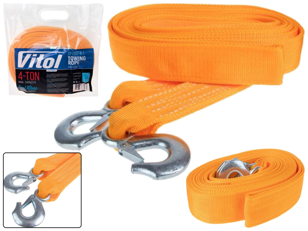 Тип ремня: буксировочный ремень. Тип: ленточный. Длина: 5м. Ширина: 48мм. Материал троса: полиэстер. Цвет: оранжевый. Максимально допустимая рабочая нагрузка: 4т. Оснащен металлическими крюками для буксировки. Тип крепления: крюк-крюк. Поставляется в пакете.