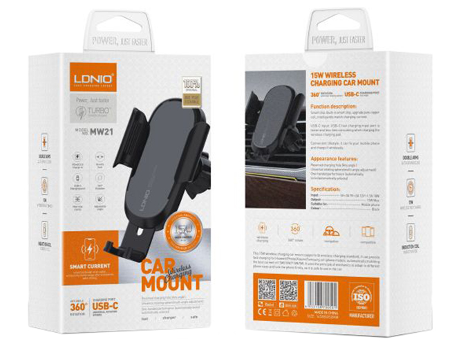 Автодержатель LDNIO MW21 Wireless 15W Цвет Черный