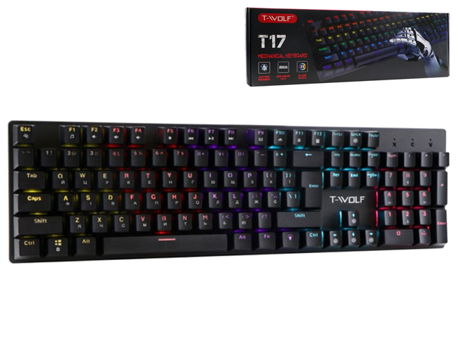Клавиатура игровая TWolf T17 LED Blue Switch, Цвет Черный