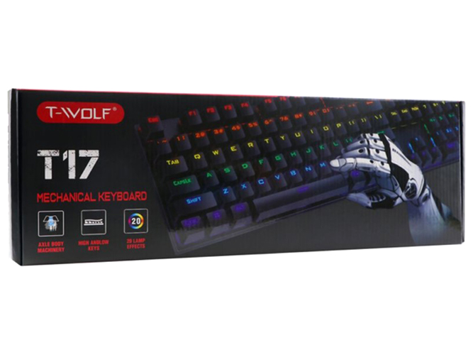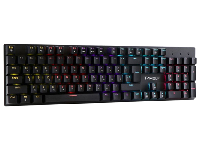 Игровая клавиатура TWolf T17 LED Blue Switch создана с использованием передовых технологий и качественных материалов для обеспечения максимально эффективного и комфортного игрового процесса. Данная модель представляет собой полноразмерную (104 клавиши) клавиатуру механического типа, которая отлично подойдёт для игр, работы и развлечений. Она выполнена в достаточно сдержанном, но стильном дизайне и дополнена семицветной LED подсветкой. RGB подсветка может работать в разных режимах и настраиваться в соответствии с предпочтениями пользователя. Её корпус надёжно собран и защищён от воды, изготовлен из прочной комбинации ABS пластика и металла.