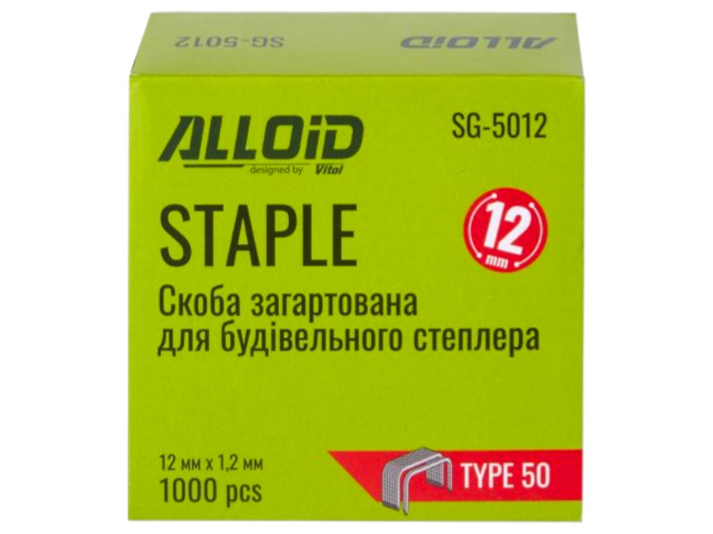 Скобы Alloid Pro, 12 мм х 1.2 мм, тип 50, закалённая сталь, для строительного степлера, 1000 штук