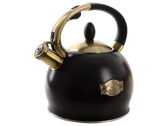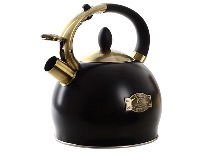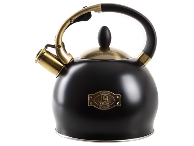 Чайник IQ Ве Еnergy изготовлен из нержавеющей стали с высоким содержанием хрома, благодаря чему изделие получает гарантированную защиту от коррозии и деформации, а также не боится нагрева до высоких температур. Вместе с тем, нержавеющая сталь, из которой изготовлен чайник является полностью безопасной для здоровья. Благодаря глубокому цвету, чайник добавит привлекательного акцента кухне владельца, гармонично вписываясь в любой интерьер. Бакелитовый свисток со стальной сердцевиной легко открывает отверстие носика чайника с помощью нажатия кнопки. Кнопка встроена в ручку чайника, которая изготовлена из бакелита, который не нагревается. Крышка чайника также изготовлена из бакелита, что обеспечивает безопасное использование посуды и защищает от случайных ожогов. Чайник Ве Еnergy подходит для всех видов плит и мытья в посудомоечных машинах. Объем ем: 3,2л. Материал: нержавеющая сталь. Наличие свистка: да.