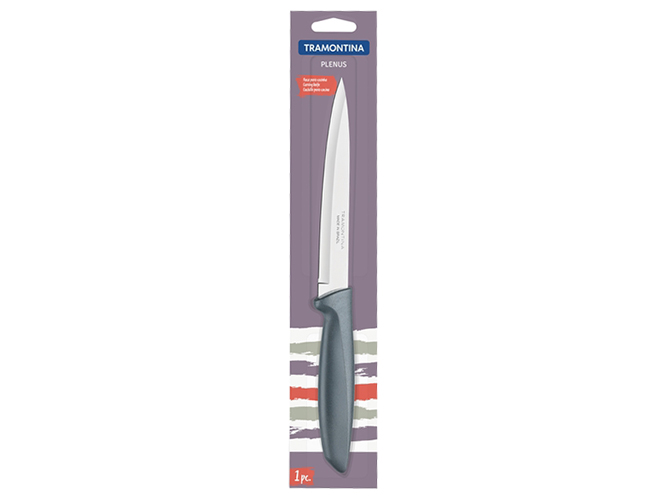 Нож разделочный Tramontina Plenus, 15,2см. Упаковка: индивидуальный блистер. Материал лезвия: нержавеющая сталь AISI 420. Материал рукоятки: полипропилен. Режущая кромка ножа: гладкая. Цвет: серый.