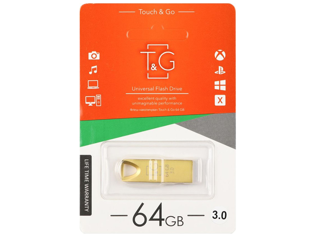 USB Flash Drive 3.0 T'amp;G 64gb Metal 117 - это компактный флеш-накопитель, оснащенный современным интерфейсом для высокоскоростной передачи данных. Модель реализована в оригинальном дизайне, благодаря небольшим размерам и весу с лёгкостью поместится даже в кошельке. Для ее изготовления используются надежные электронные компоненты и высококачественные материалы, что гарантирует длительный срок службы и полную безопасность данных при длительном хранении. Корпус флешки изготовлен из прочного, коррозиестойкого металла и представляет собой одно целое с корпусом разъема, что значительно повышает надежность. Петелька со скошенными внутрь гранями, расположенная у торца, значительно упростит ее извлечение - обеспечит удобный захват и предотвратит скольжение пальцев. Модель снабжена интерфейсом USB 3.0, поддерживает работу с устройствами, оснащенными USB разъемом ранней версии. Для ее работы с наиболее распространёнными ОС не требуется установка дополнительного программного обеспечения. Объем флеш-накопителя - 64ГБ.