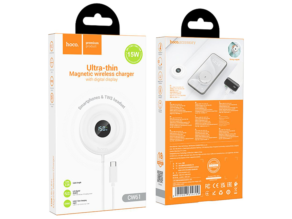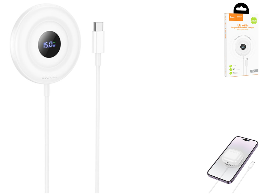 Беспроводное Зарядное Устройство Hoco CW61 Magnetic 15W LED Display Цвет Белый