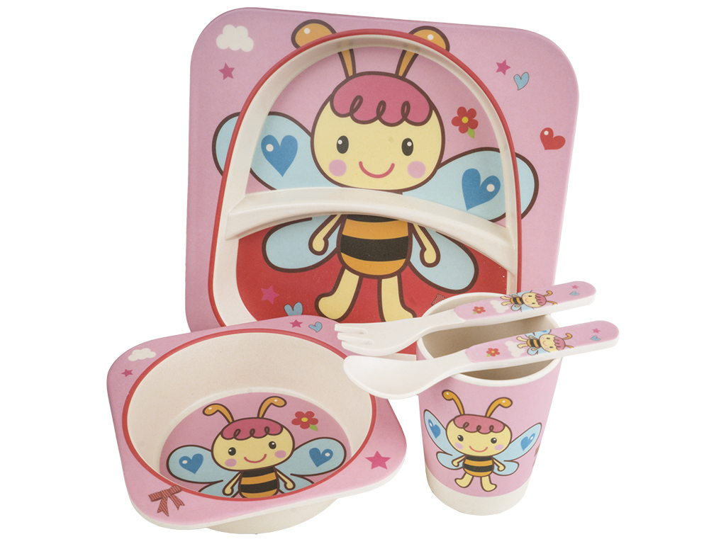 Набор детской бамбуковой посуды содержит: тарелка квадратная на два отсека 21,4х21,4х2,6см, салатник квадратный 14,1х14,1х4см 300мл, стакан 7х7х9,5см 240мл, вилка 13,5х2,2см, ложка 13,5х2,2см. Детская посуда из эко-волокон бамбука. Обладает невероятно приятными тактильными свойствами. Основные преимущества бамбуковой посуды над посудой из других материалов: антибактериальность; высокие гигиенические свойства; простота ухода; отсутствие токсических компонентов, безопасность в использовании. Температура использования: от -20 до +70°С. Можно мыть в посудомоечной машине. Чтобы посуда из бамбукового волокна сохраняла свои свойства и внешний вид, не наливайте в нее кипяток и не используйте ее в микроволновых печах. Биоразлагаемый материал. В подарочной коробке (тонкий гафрокартон с цветной печатью).