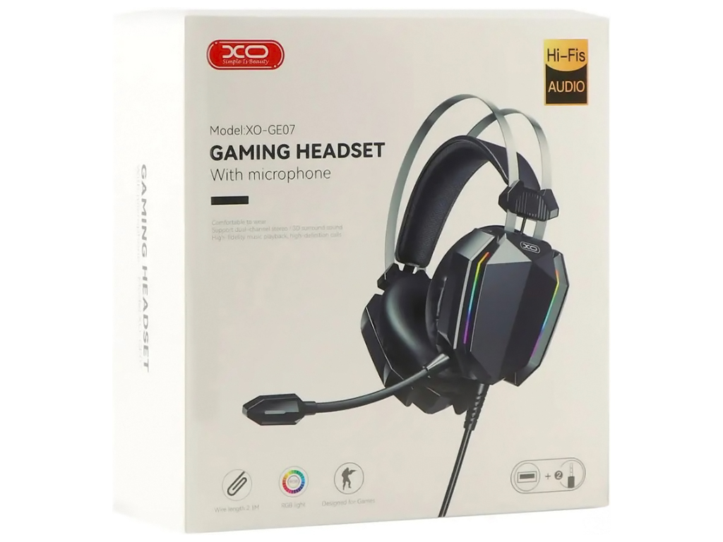 Игровые наушники XO-GE-07 Static RGB Long mic USB+Dual 3.5мм мятая упаковка, Цвет Черный