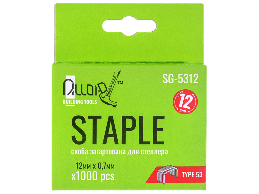 Скобы закаленные Alloid для степлера, тип 53, 12×0,7мм, 1000шт