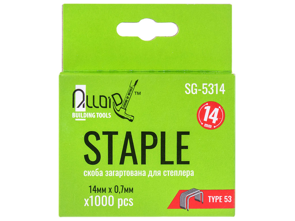Скобы закаленные Alloid для степлера, тип 53, 14×0,7мм, 1000шт