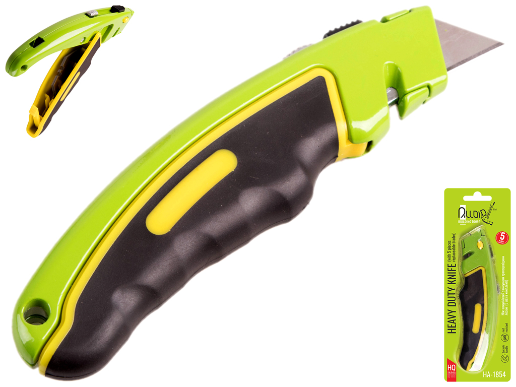 Нож алюминиевый Alloid с выдвижным трапециевидным лезвием (5шт) прорезиненный