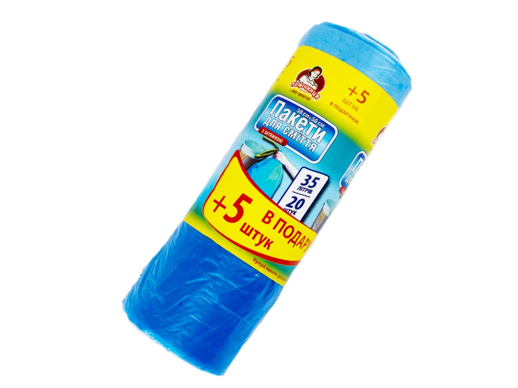 Мусорные пакеты с затяжками ТМ "Помічниця"  35л 20шт + 5шт LDPE, цвета в ассортименте