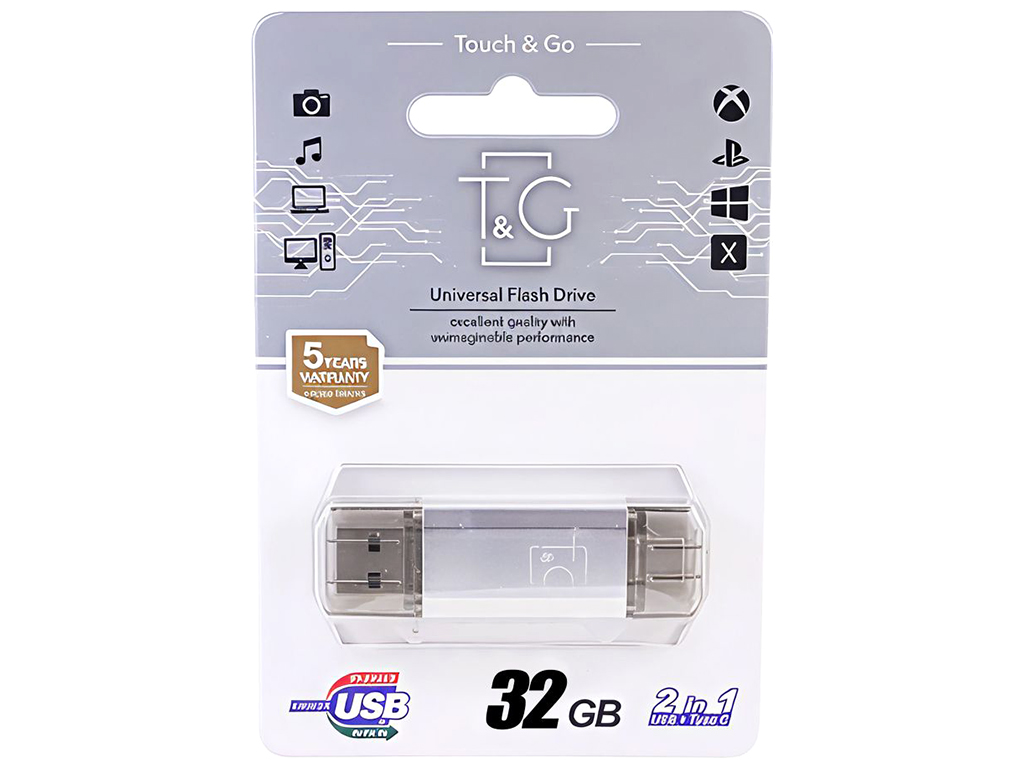 USB флеш-накопитель T&G 32gb USB/Type C 009, цвет серебро