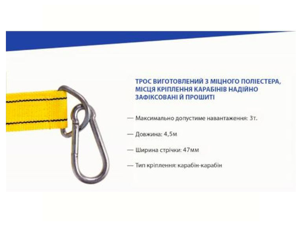 Трос буксировочный ST1004/ТР-202-3-2 3т лента 47мм х 4,5м желтый/карабин/блистер 02327