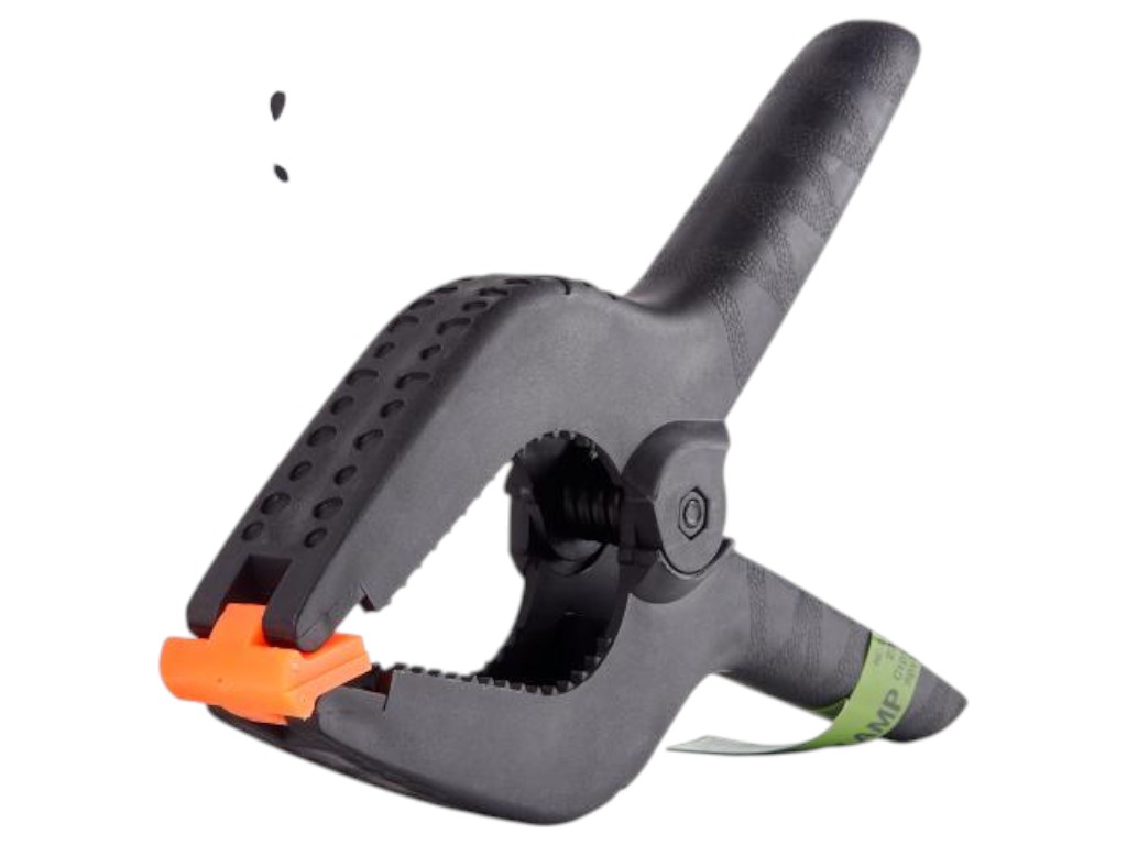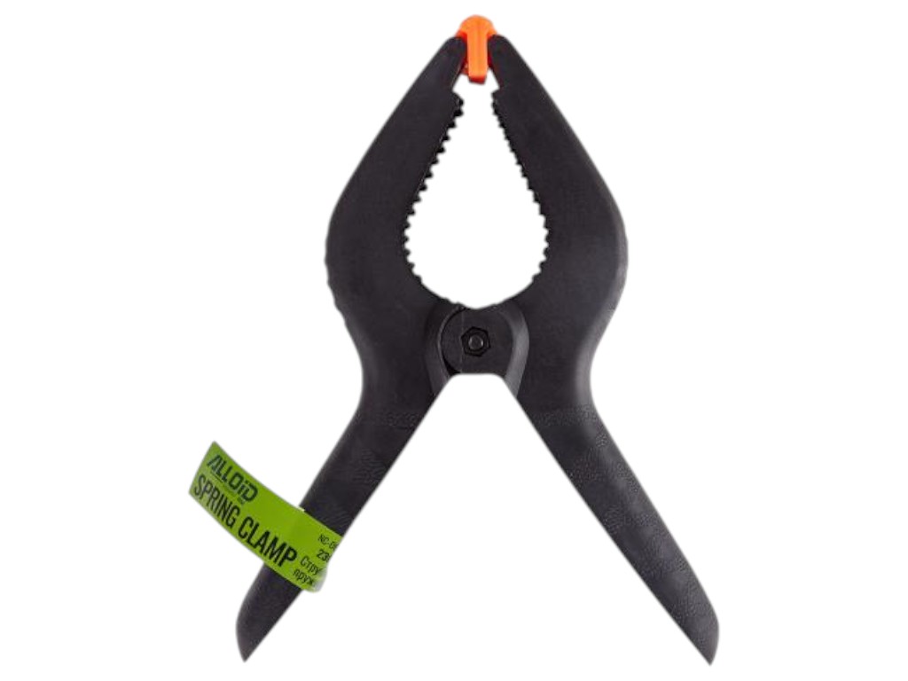 Корпус из прочного пластика с резиновыми накладками на губках надёжно удерживает заготовки, предотвращая повреждения и смещение. Мощная пружина создаёт высокое усилие зажима без регулировки, что удобно при выполнении столярных, монтажных и ремонтных работ.