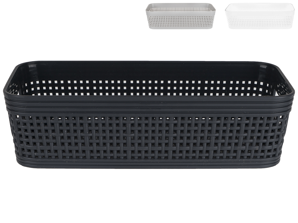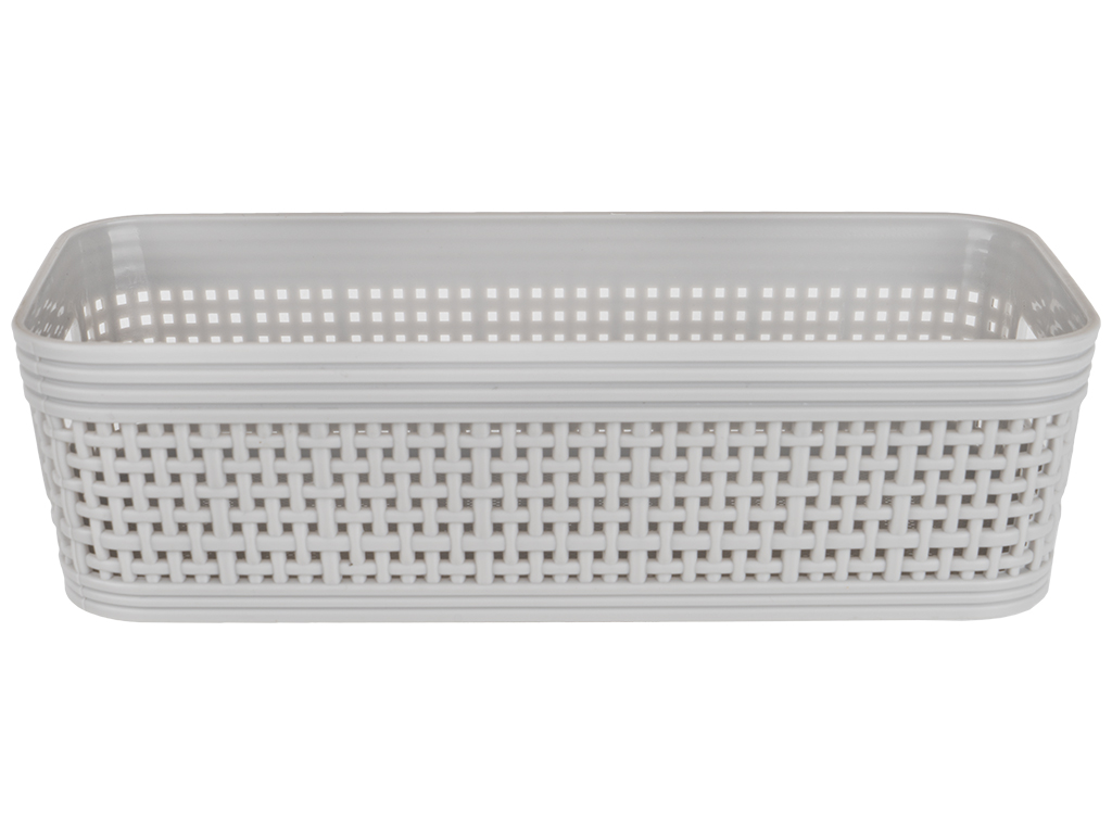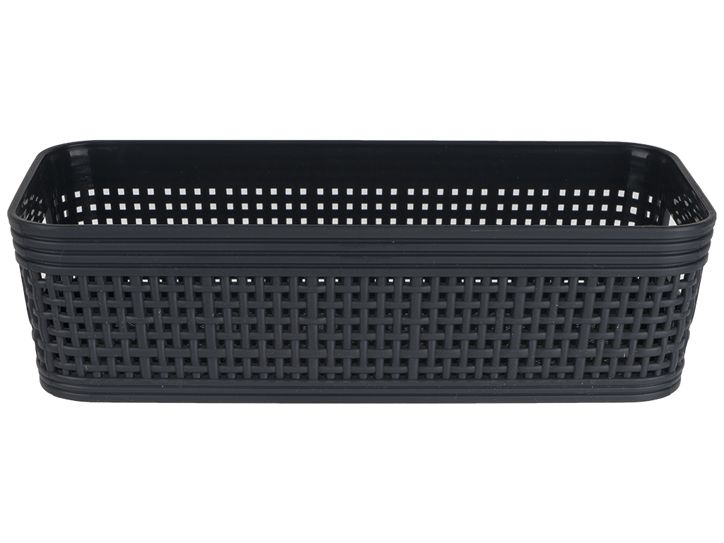 Лоток-плетенка пластиковый с ручками 22х10х6см. Материал высокого качества, удобство и уютный дизайн. Цвета: серый, черный, белый.