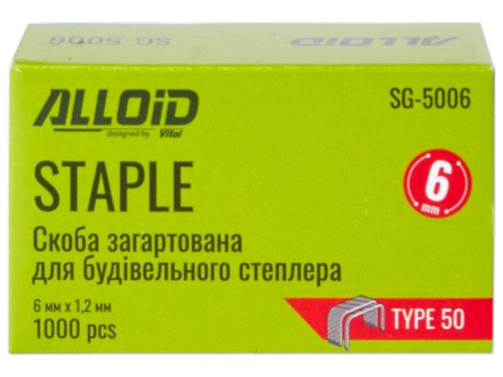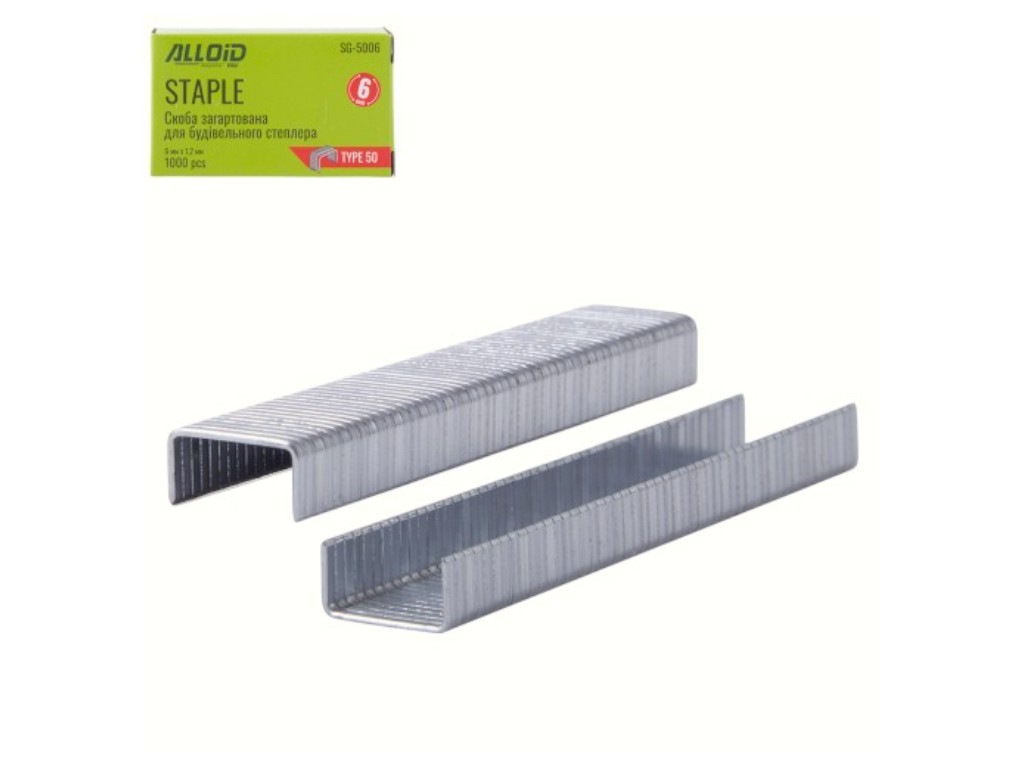 Скобы Alloid Pro, 6 мм х 1.2 мм, тип 50, закалённая сталь, для степлера, 1000 штук