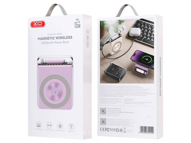 Power Bank XO PR226 Mini Transparent Magnetic Absorption 15W 10000mAh Цвет Фиолетовый