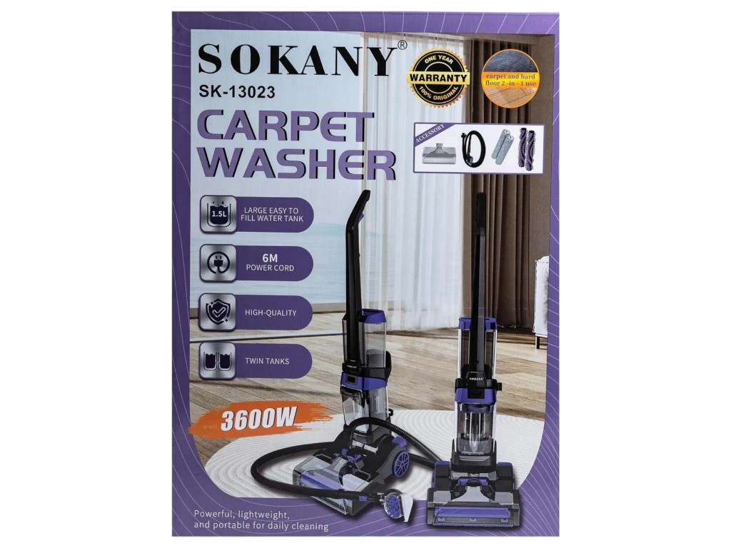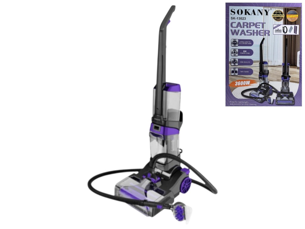 Пылесос моющий Sokany, 1,5л, 3600Вт, вертикальный, контейнер, 113х34см, цвет фиолетовый