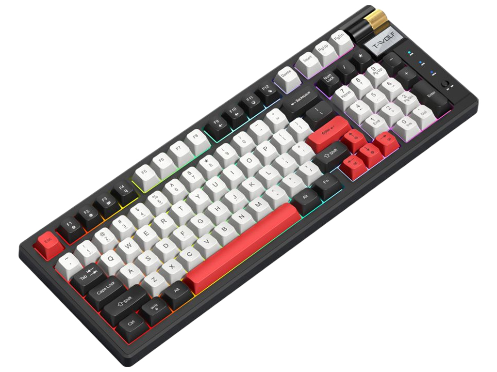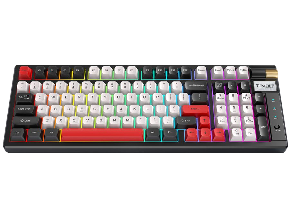 Игровая клавиатура TWolf T70 сочетает точную механику, свободу беспроводного подключения и эффектную Rgb-подсветку. Оснащена 97 клавишами с механическими переключателями Red Switch, поддерживает горячую замену и anti-ghosting. Подключается тремя способами: по Bluetooth, через адаптер 2.4GHz или кабель Type-C. Корпус выполнен из ударопрочного ABS-пластика. Размер клавиатуры - 404×142×37.5 мм. Встроенный аккумулятор 2000 мАч обеспечивает длительную автономную работу. В комплекте - кабель Type-C.