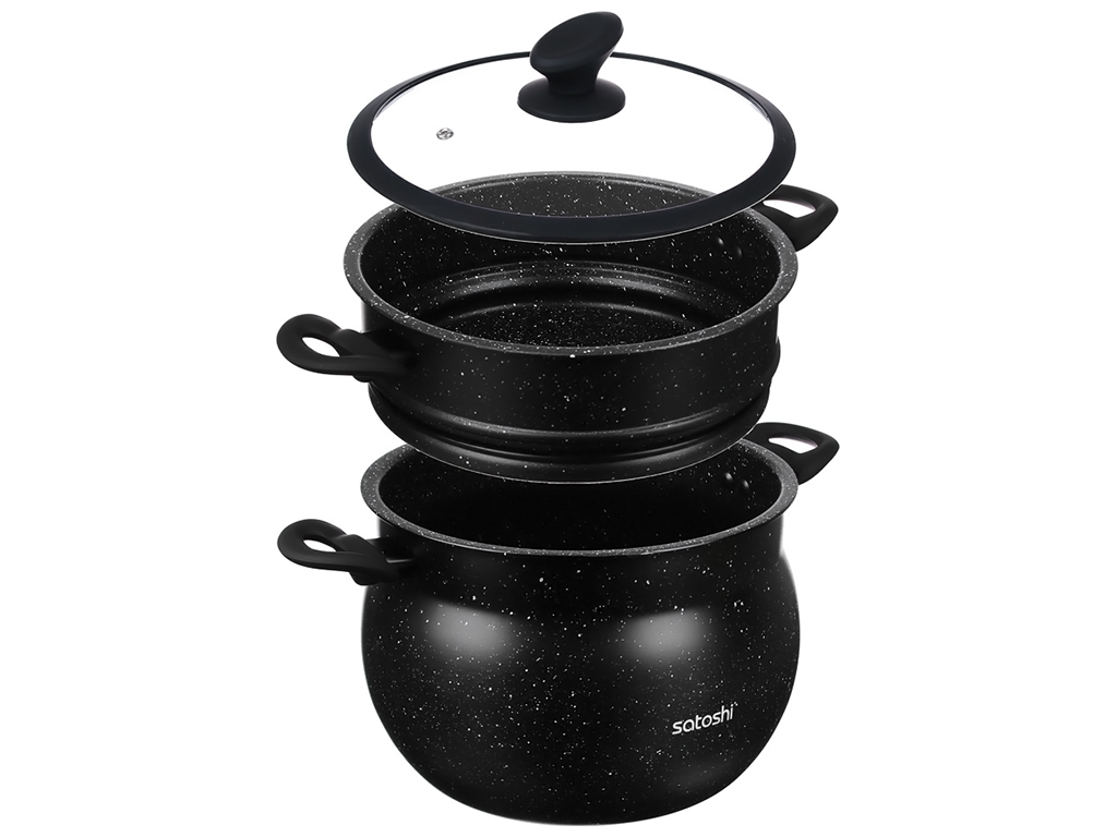 Кастрюля-пароварка Satoshi, индукционное дно, 5,5л, 22,5x18см/22,5x8,5см (цена за набор 2шт). Тип дна: для всех типов плит, включая индукцию. Тип внутреннего покрытия: антипригарное покрытие мрамор.