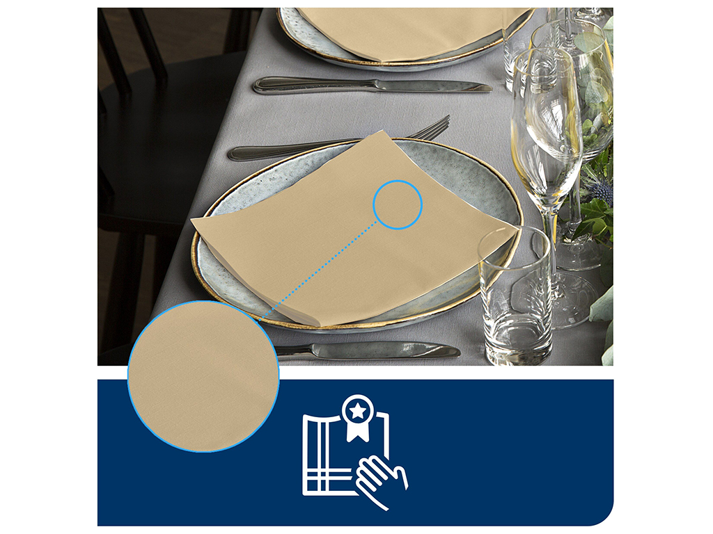 Салфетки Tork LinStyle Premium кремового цвета созданы для использования в ресторанах и заведениях с полным обслуживанием, где важна эстетика и практичность. Изготовленные из нетканого материала LinStyle®, они имитируют вид и ощущение настоящего текстиля, обеспечивая при этом более высокую плотность, мягкость и высокую впитывающую способность по сравнению с обычными бумажными салфетками. Размер 39×39 см обеспечивает удобную сервировку стола, а сдержанный кремовый цвет добавляет элегантности сервировке.