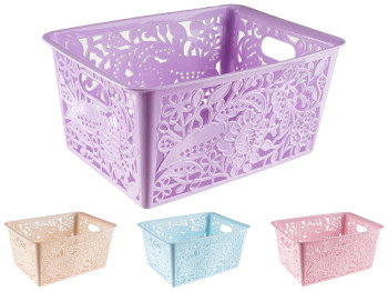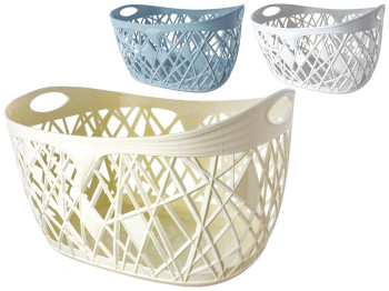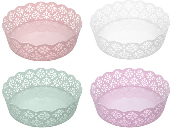 Корзинка ажурная. Размер: 27x20x9см. Материал: пластмасса. Форма: овал. Корзина украшена перфорацией. Подойдет для хранения несыпучих продуктов и мелких вещей. Легко моется, не занимает много места.